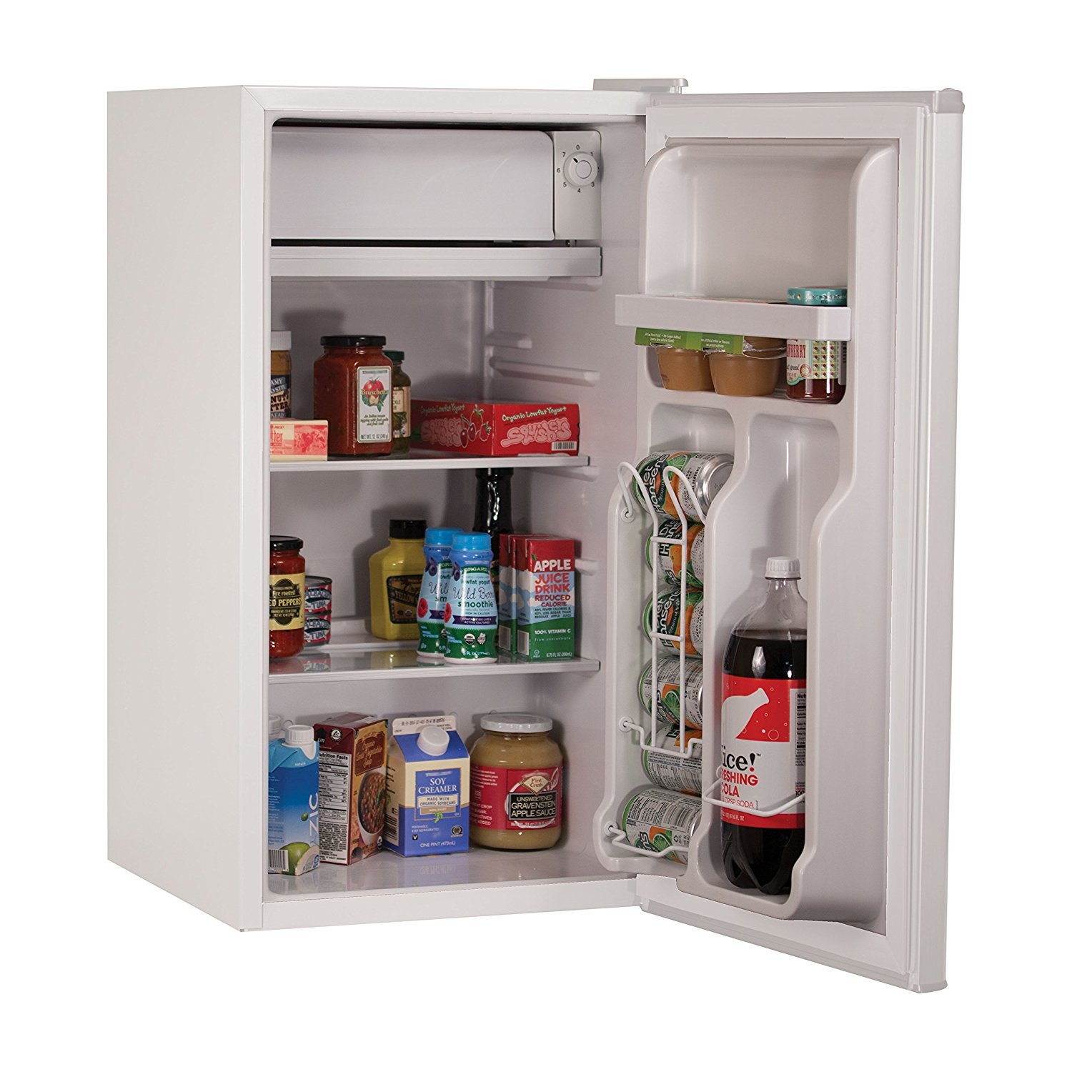 - ✅ Product 1: LARGE CAPACITY - The 2 removable glass shelves expand the storage space and makes the fridge easy to clean. Additional door storage fits five 12 oz. cans (like soda and beer), small containers on the top shelf, and 2 liter door storage for taller bottles
