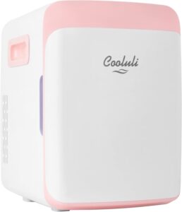 Cooluli 15L Mini Fridge for Bedroom - Car, Office Desk & College Dorm Room - 12V Portable Cooler & Warmer for Food, Drinks, Skincare, Beauty, Makeup & Cosmetics - AC/DC Small Refrigerator (White)