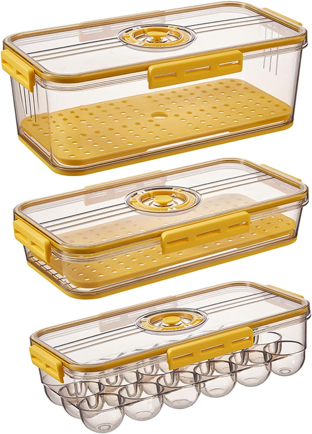 • ✅ 【Built-In Drain Tray for Fresh Produce】Our fridge storage containers come with a bottom drip tray and drainage holes, making them ideal vegetable containers for fridge and produce storage. The tray keeps fruits, vegetables, and berries elevated away from moisture, so you can store produce directly after washing. This design reduces rot and extends food freshness by 3-5 days, solving the hassle of soggy veggies.