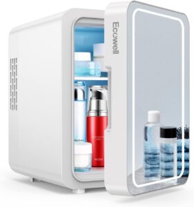 - ✅ LED MIRROR DESIGN: ECOWELL mini fridge for skin care with mirror and LED light-3 adjustable light levels, specially designed for makeup, allows you to put your makeup on in a dim environment. Please note: The touch sensor switch controls led lights, and the brightness of the LED makeup mirror can be adjusted by touch screen.