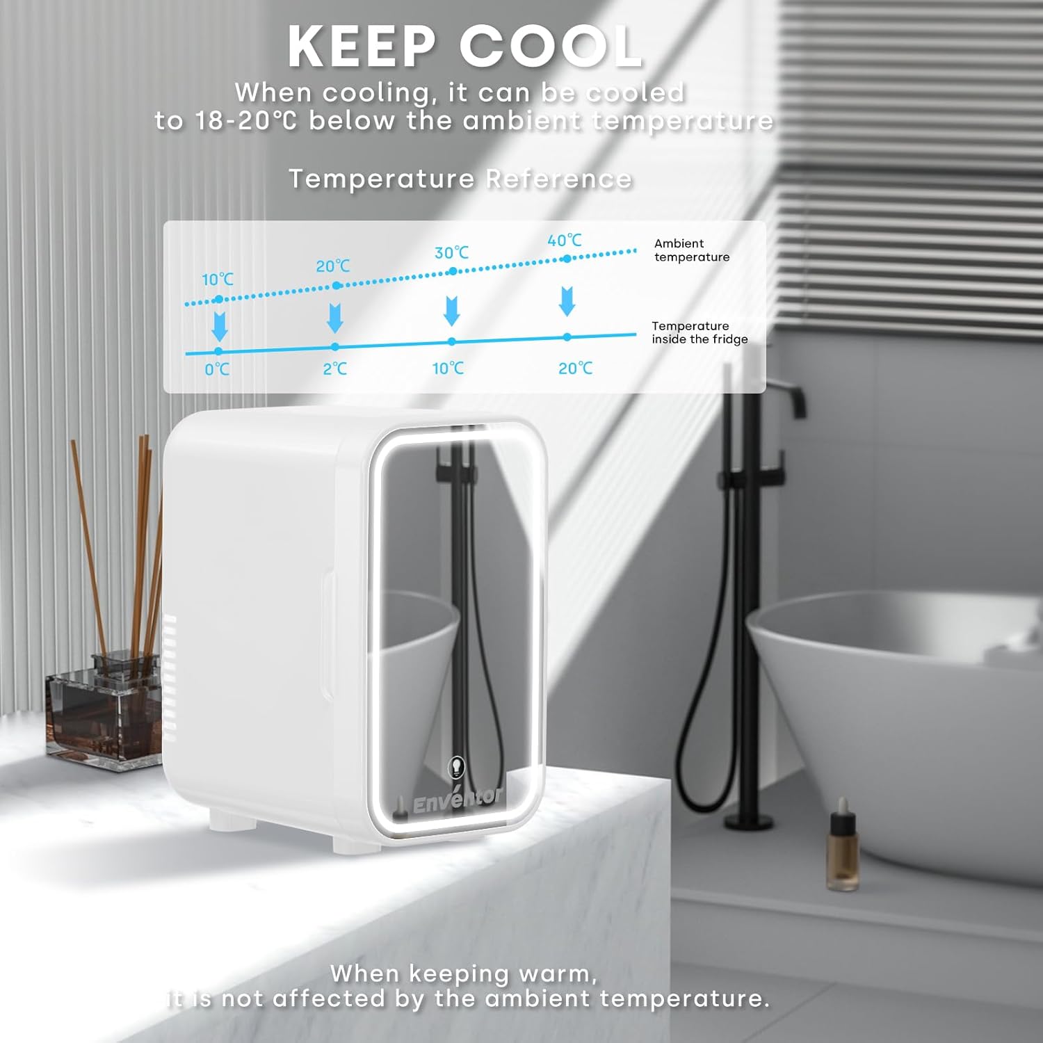 However, its small size belies its power. It cools down quickly. Also, it can keep items warm. This dual functionality is impressive. Think of it as a personal climate controller. It’s a silent operator. No annoying hums here. The white finish is sleek. It blends with any decor. This fridge is more than just a cooler. It’s a beauty station. It organizes your essentials. Consequently, your vanity stays tidy. The Enventor 8-Can Mini Fridge with LED Mirror is a thoughtful design. It anticipates your needs. This tiny titan performs admirably. It’s a small wonder.