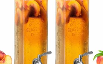 View on Amazon Unleash a cascade of refreshment with the Kook leak-proof glass beverage dispenser, a true sentinel of hydration in your kitchen. This stunning vessel, with its clear rectangular …