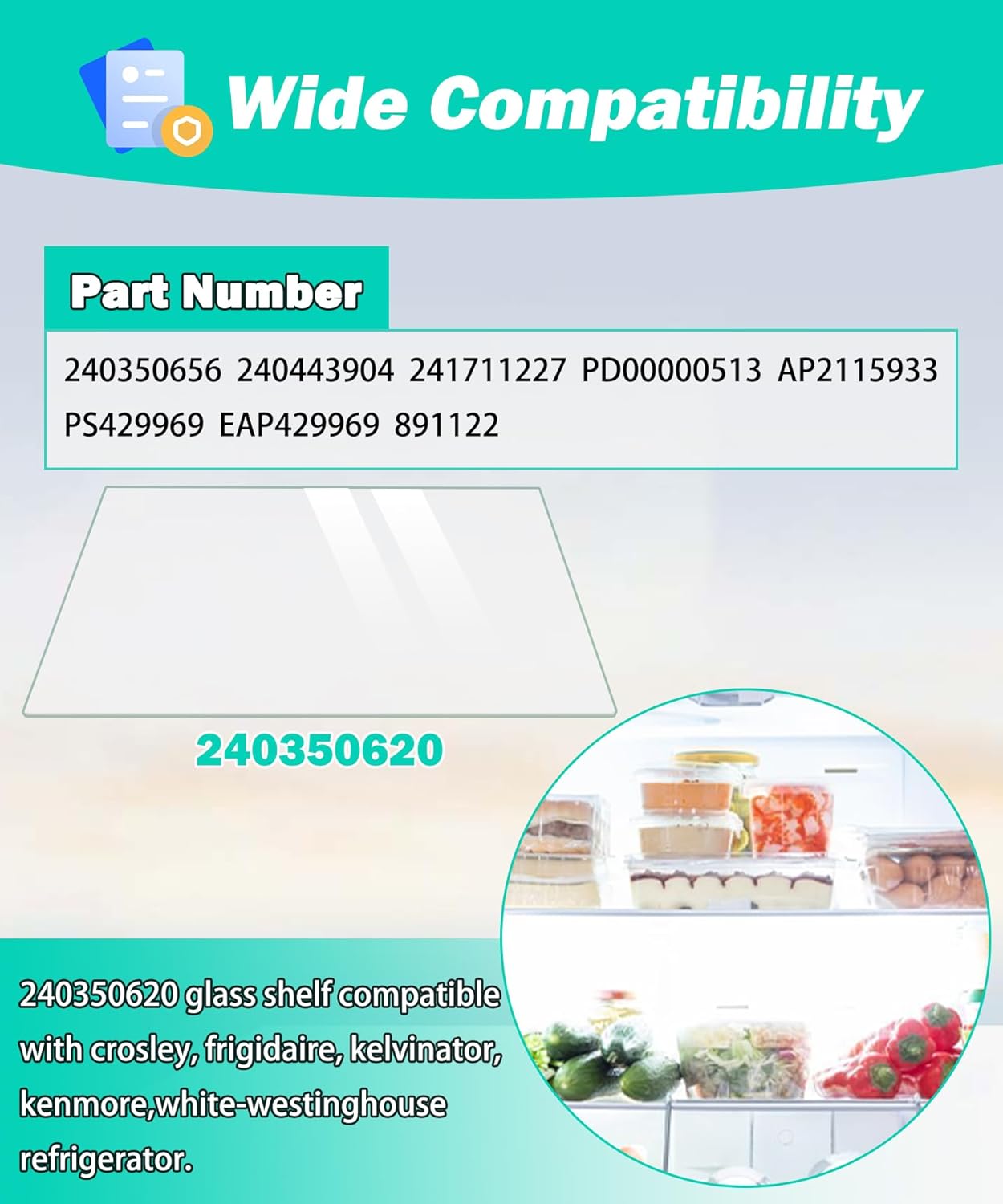 • ✅ 【240350620 GLASS SHELF REPLACEMENT PART NUMBERS】240350620 AP2115933、240350656、240443904、241711227、891122、AH429969、EA429969、PS429969. Enjoy a hassle-free upgrade that upgrade your kitchen now!