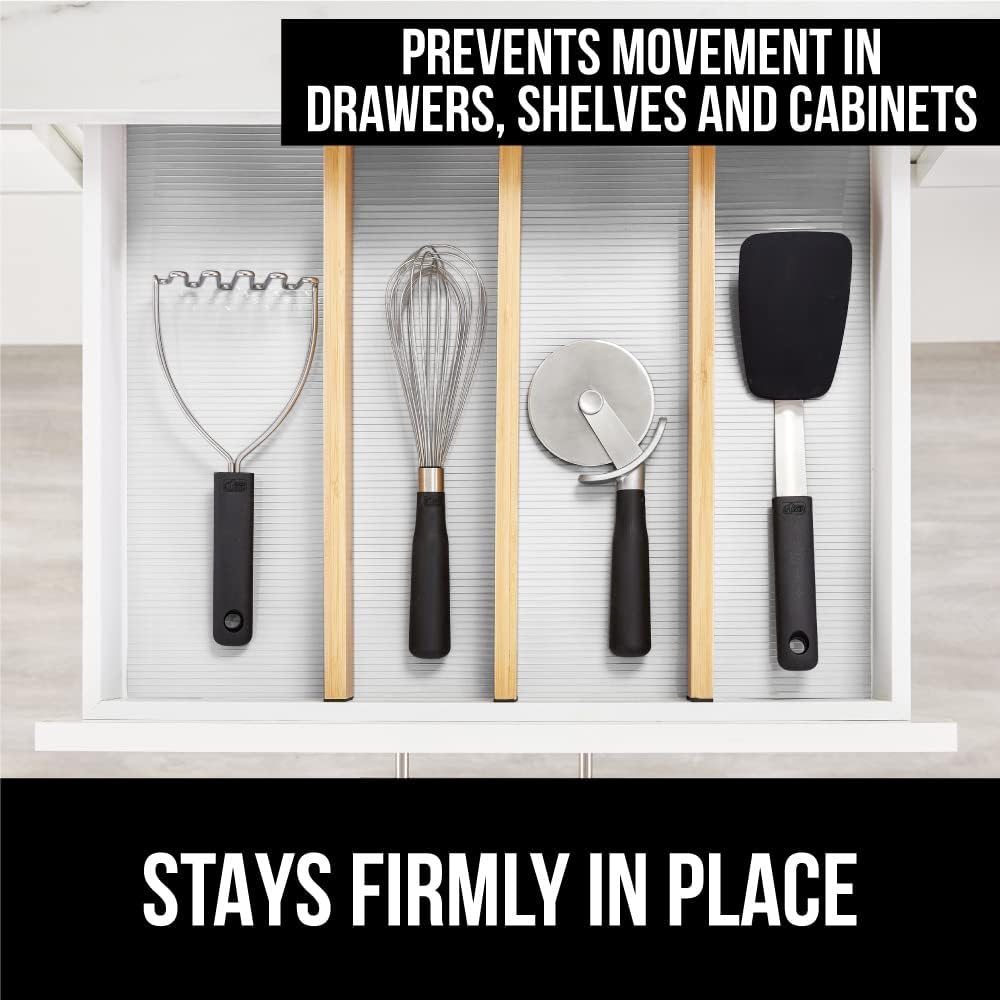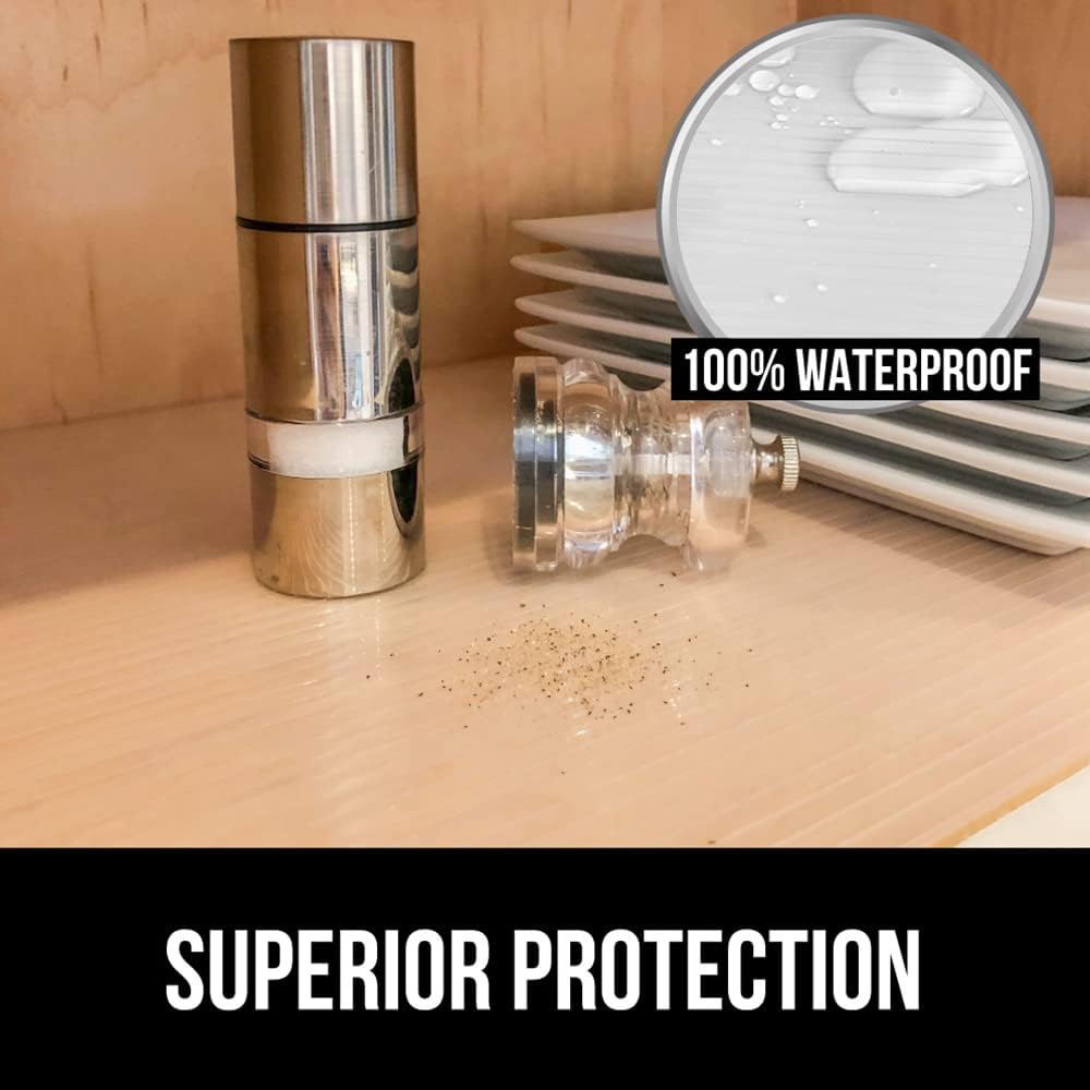 This bundle includes a set of four Gorilla Grip clear wire shelf liners, each measuring 18×36 inches, and a Gorilla Grip clear ribbed drawer liner that’s 17.5×20 inches. Both types of liners are designed to provide a strong grip, helping to keep your items in place on shelves and inside drawers.