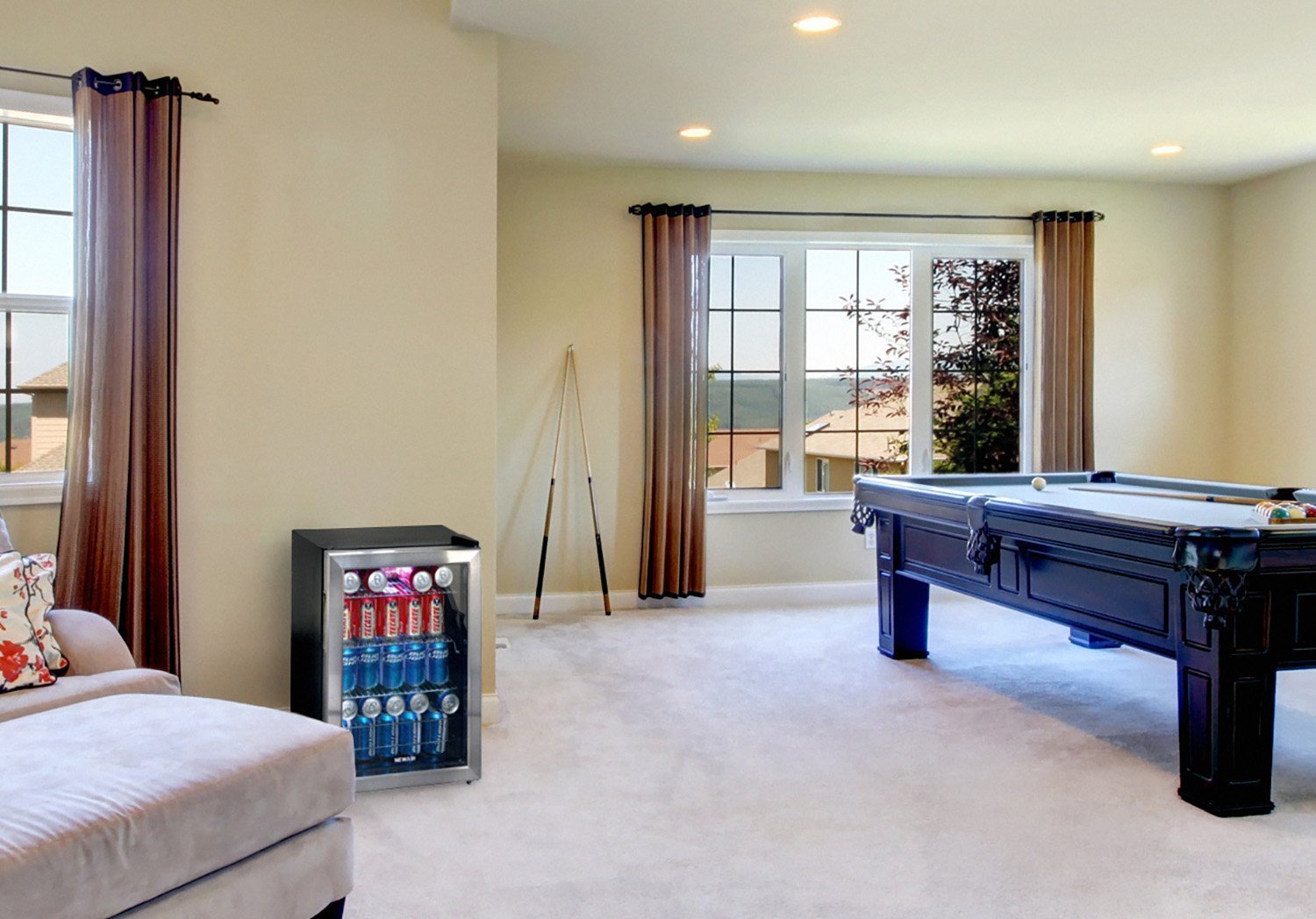 - ✅ COMPACT DESIGN HOLDS UP TO 90 CANS – At just 17 inches wide, this compact fridge offers surprising capacity with room for up to 90 standard cans. Its freestanding design fits easily into apartments, rec rooms, entertainment spaces, and offices without requiring renovations or special installation.