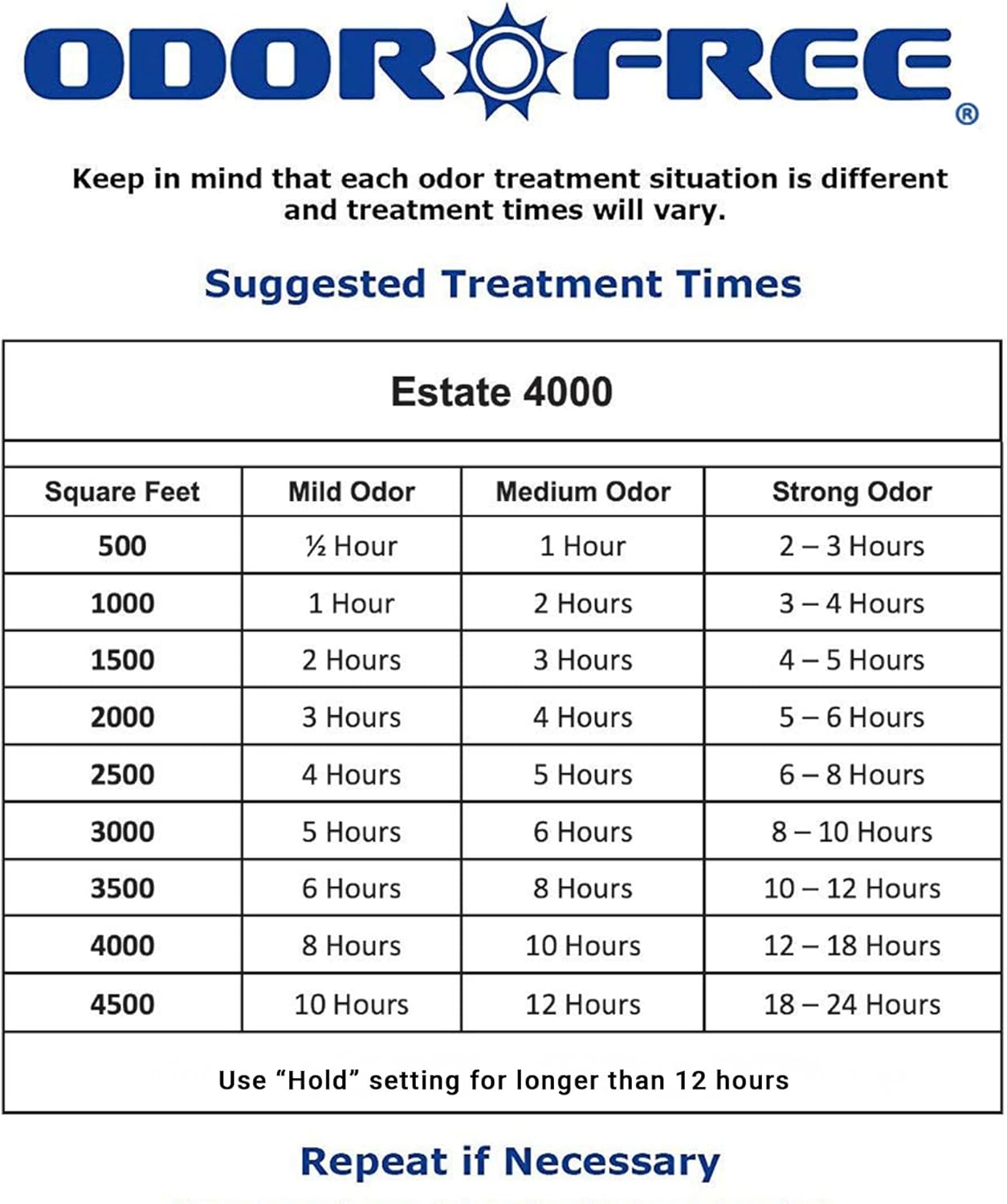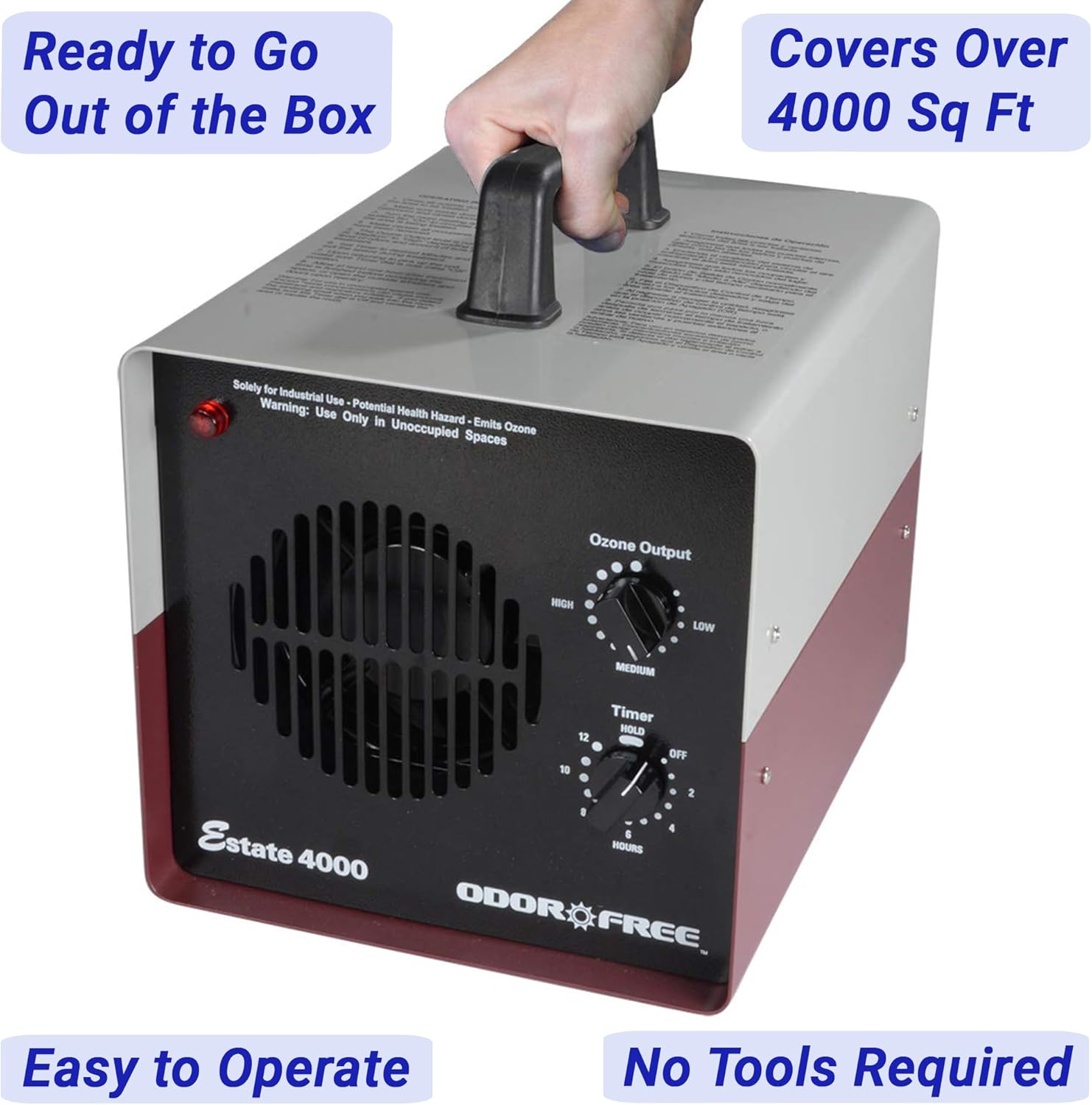 The OdorFree Estate 4000 Ozone Generator is a machine that gets rid of bad smells in big places. It works in large homes, offices, townhouses, and even business areas. This device is easy to use and can clean the air in spaces up to 4000 square feet by attacking the very source of the odors.