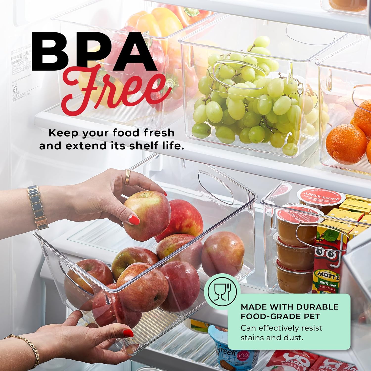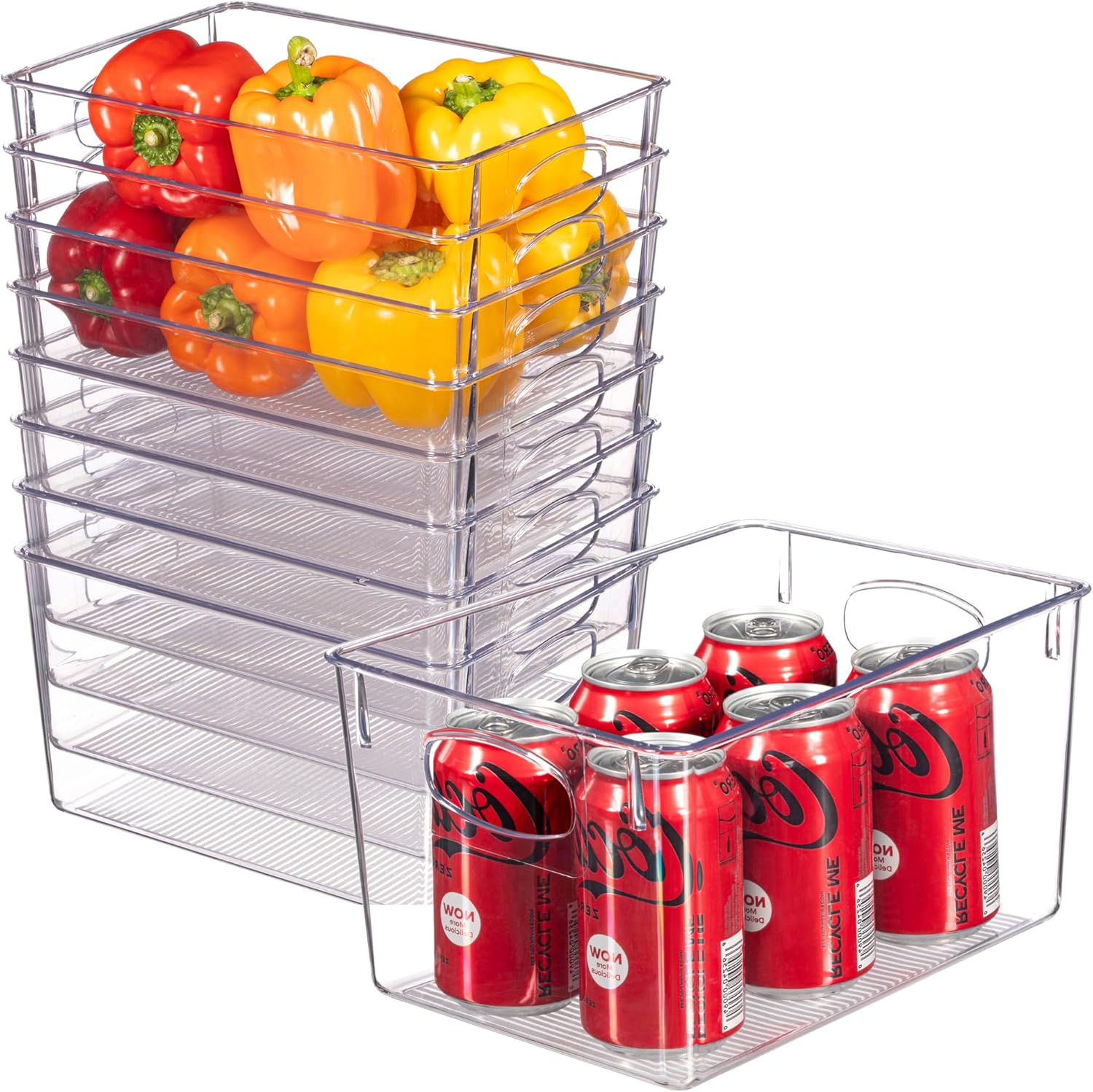 The VivaSpace Clear Refrigerator Organizer Bins are a set of eight plastic containers. They help you organize many different areas, like your fridge, pantry, or even your bathroom. You can use them to store food, fruit, and other kitchen items. They’re also safe to use in the freezer. Because they’re clear, it’s easy to see what’s inside. These bins help keep things neat and are simple to clean.