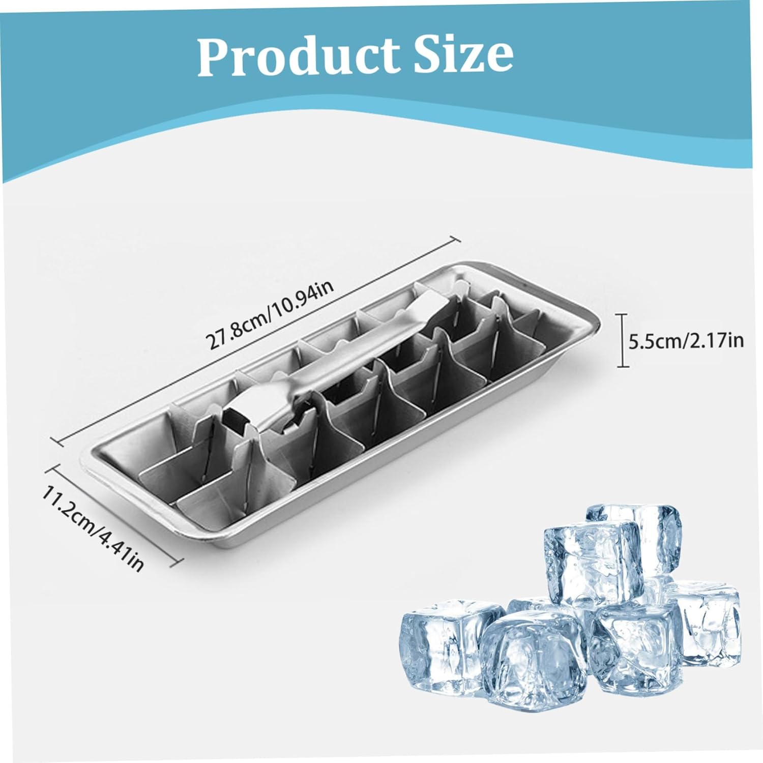 • ✅ Sophisticated Craftsmanship: Made with delicate workmanship from high-quality stainless steel, this ice cube tray produces more ice cubes in less time. Measuring 11.25 x 4.75 inches, it's simple to use and ensures that you'll often have plenty of ice on hand