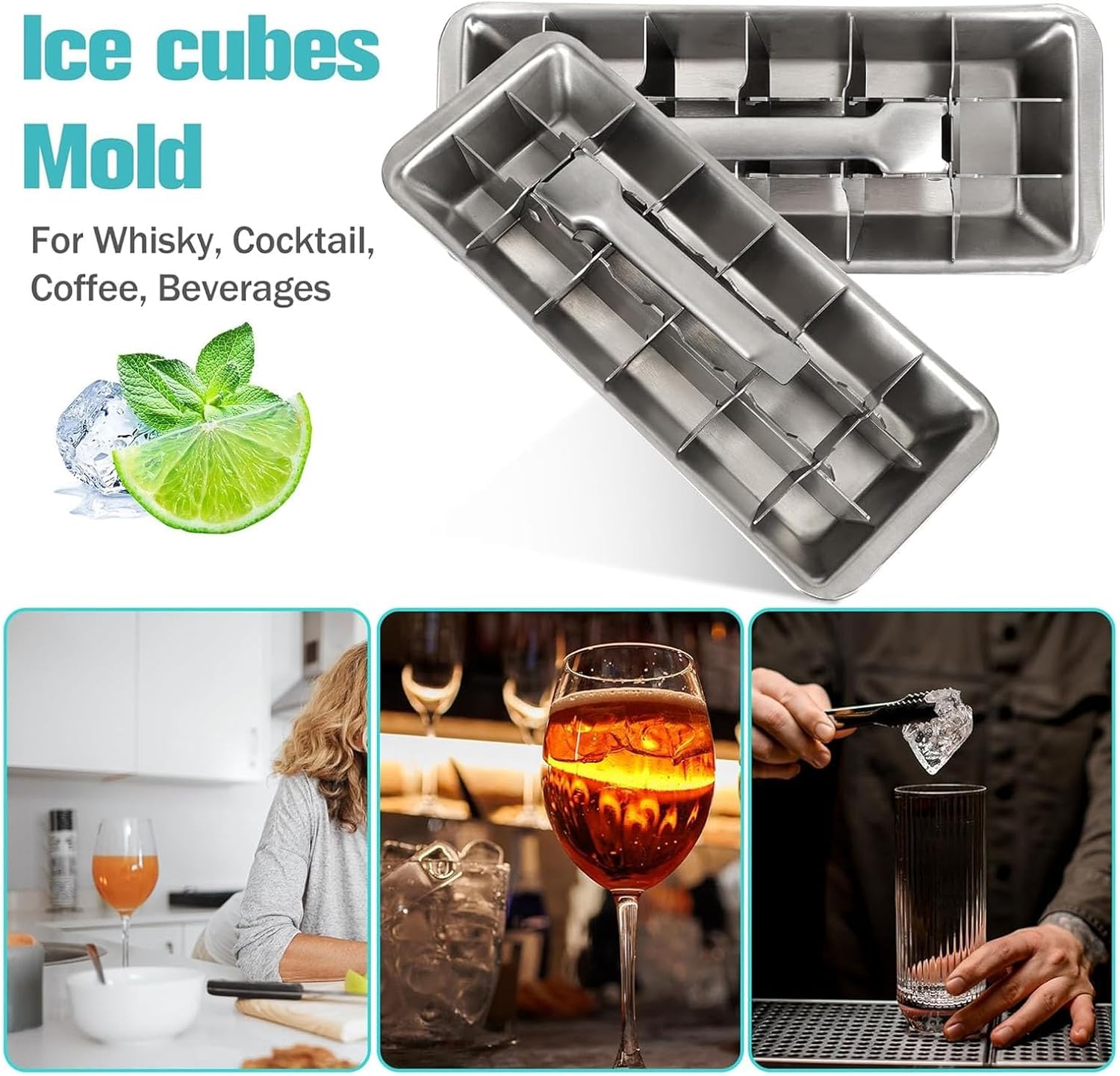 • ✅ Food-grade stainless steel: This 18-compartment stainless steel ice cube trays is made of food grade 304 stainless steel, which is more durable and sanitary than plastic or silicone ice trays. It will not absorb odors and keep ice cubes fresh and pure.