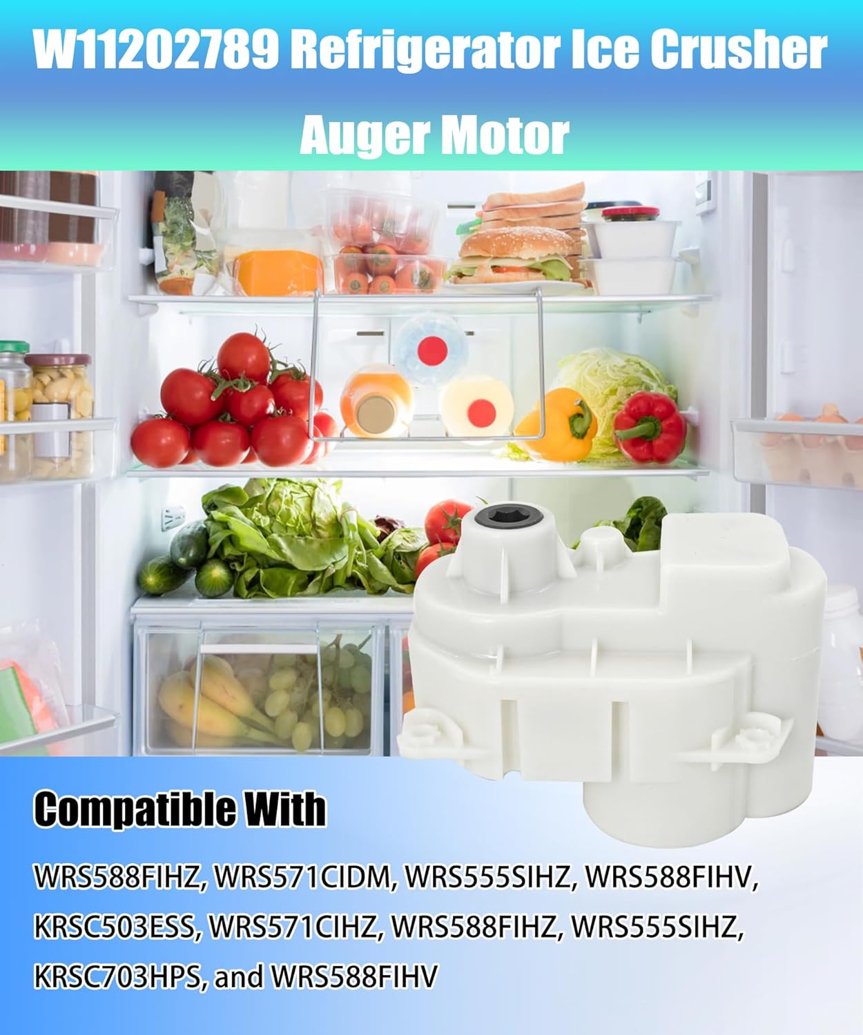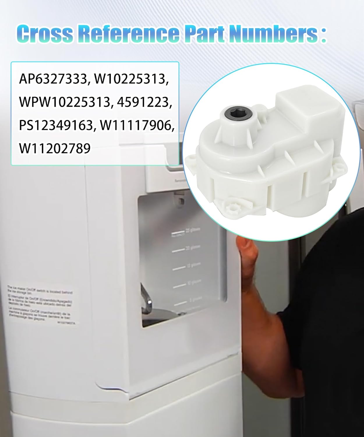 The AWTURBO W11202789 ice bin auger motor is a part for your refrigerator. It helps the ice dispenser work by powering the auger that pushes out the ice. This motor is a direct fit for Whirlpool refrigerators and also works with Kenmore and Maytag models. It can replace several different part numbers, including AP6327333 and W10225313, making it a versatile repair option.