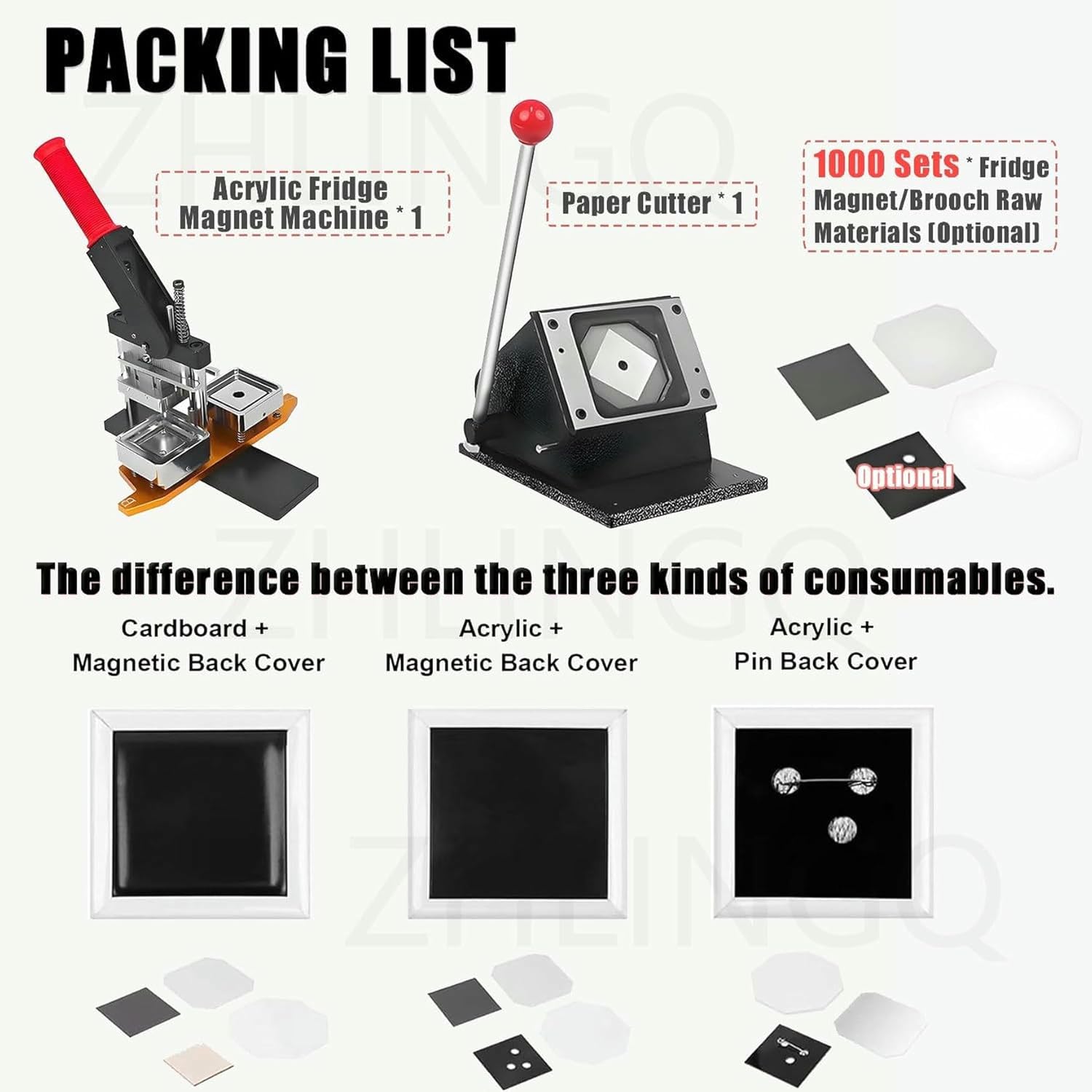 Image of WRTYHGVGT Kit for Making Square Magnets for Refrigerator, Kit for Making Pottery, 50 Mm X 50 Mm, Paper Cutter and 1000 Sets of Consumables,Maker+Knife+(Acrylic+Magnet)*1000
